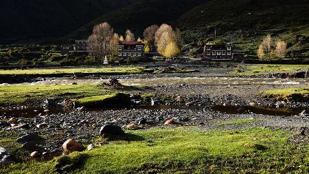 湛藍(lán)的天空下,雄鷹在盤(pán)旋,牛羊在安詳?shù)芈匠圆?,靜靜的小河在山邊蜿蜒流淌,充滿綠意的白楊樹(shù)在風(fēng)中搖曳,藏式民居不時(shí)升起縷縷炊煙,寂靜、空曠的原野深處偶爾會(huì)傳來(lái)幾聲狗叫高原的陽(yáng)光又賦予這幅風(fēng)景畫(huà)凝重的色彩這樣的畫(huà)面叫人心醉,讓人留戀忘返從折多山腳下至新都橋鎮(zhèn),再至塔公草原,處處都是入畫(huà)的美景,不愧稱為“攝影家的天堂”。