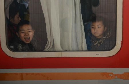春運(yùn)期間,各地出行的人潮中總能看到隨父母一起踏上返鄉(xiāng)路的孩子們,他們無(wú)法體會(huì)到春運(yùn)一票難求、歸程摩肩接踵等帶給大人們的煩惱,掛在臉上的只是或興奮、或好奇的燦爛笑容。新華社發(fā)