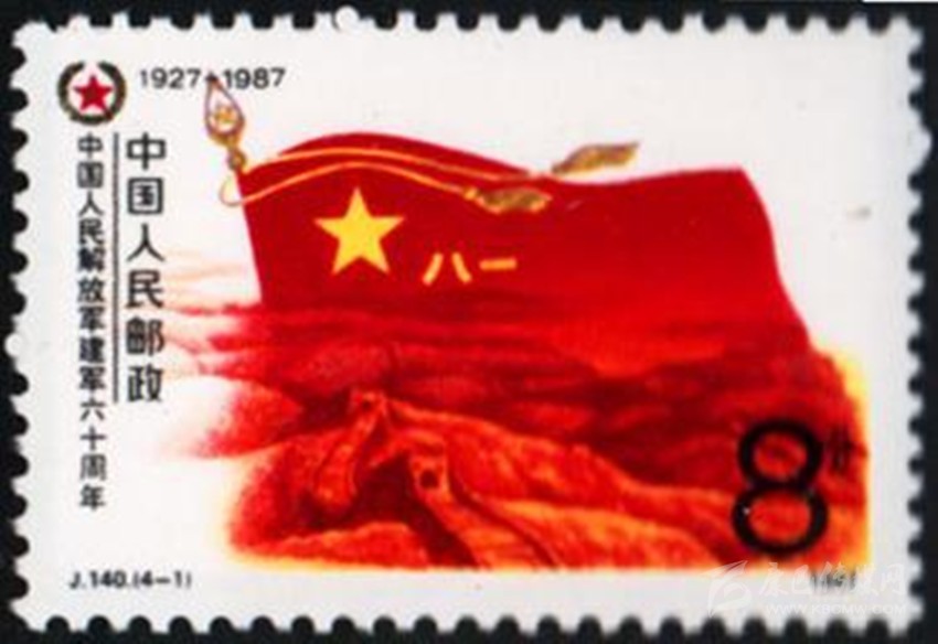197781日原郵電部發(fā)行的《中國人民解放軍建軍50周年》紀(jì)念郵票,其中第4枚“雄師過大江”,圖案中一名沖在渡江隊伍前面的戰(zhàn)士高舉一面“八一”軍旗。198781日原郵電部發(fā)行的《中國人民解放軍建軍60周年》紀(jì)念郵票一套4枚。其中第1枚“軍魂”,郵票上一面鮮紅的“八一”軍旗迎風(fēng)飄揚(yáng),旗下是蜿蜒的萬里長城,代表了中國人民解放軍是保衛(wèi)祖國和人民的“鋼鐵長城”。199581日,原郵電部試發(fā)行一套“義務(wù)兵專用”郵票一套1枚,票名為“神圣的使命”,圖案以紅光四射的“八一”軍旗為背景,以現(xiàn)代化的飛機(jī)、坦克、火箭和象征和平的白鴿為襯托,畫面是威武的陸??杖姡@示我軍鋼鐵長城般攻無不克、戰(zhàn)無不勝的精神風(fēng)貌。