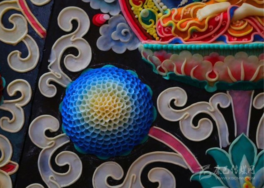 在青海塔爾寺,有一座酥油花館,陳列著僧人們巧手創(chuàng)作的多姿多彩的酥油花。它與堆繡、壁畫(huà)和磚雕一起,被譽(yù)為塔爾寺“四絕”。