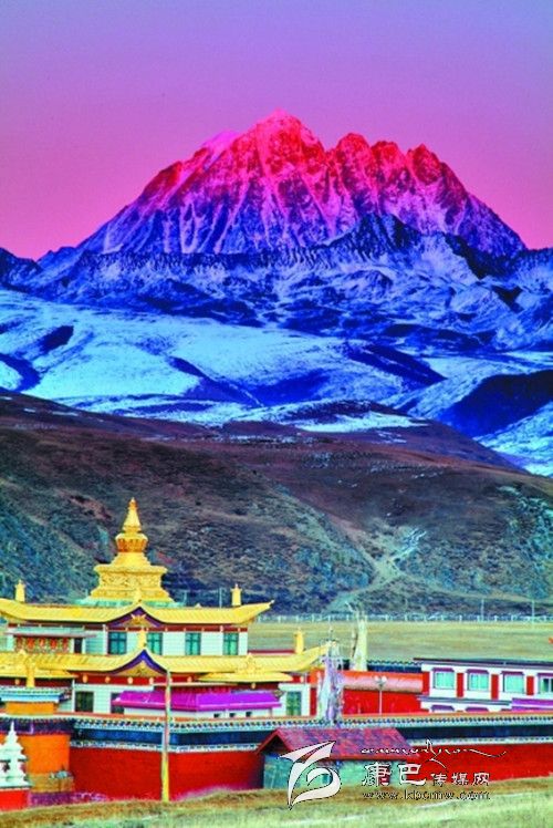 夕陽下的塔公寺。