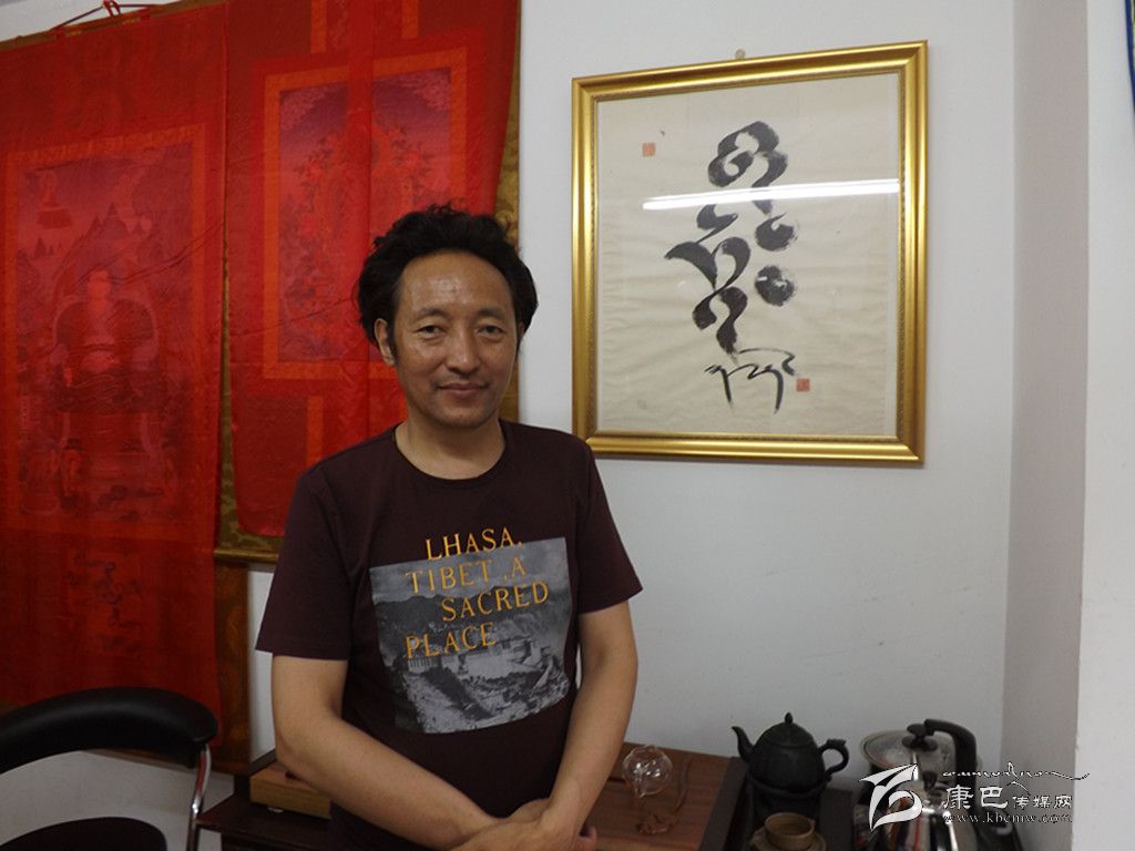 在嘎多探求藏文書法創(chuàng)新的同時,自己的工作并不穩(wěn)定,并幾經(jīng)更換,最終工作地點從康定搬到了成都。在幾個畫院做了幾年工后,嘎多索性自己開始辦畫院,經(jīng)營禮品唐卡。