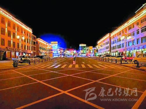 理塘縣主城區(qū)“一縱兩橫”完工后的城市夜景。