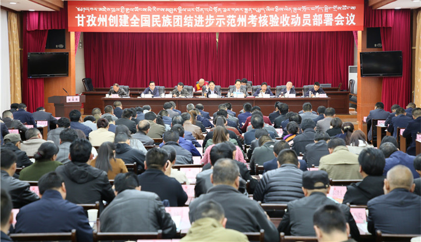 本網(wǎng)訊 近日,我州創(chuàng)建全國民族團(tuán)結(jié)進(jìn)步示范州考核驗(yàn)收動(dòng)員會(huì)在康定召開。州委書記劉成鳴出席會(huì)議并講話。他強(qiáng)調(diào),全州上下要以黨的十九大、習(xí)近平總書記關(guān)于民族工作系列重要講話和省委書記彭清華來州視察調(diào)研重要講話精神為指引,準(zhǔn)確把握全州民族工作面臨的新情況新問題,不斷加強(qiáng)和深化民族團(tuán)結(jié)進(jìn)步創(chuàng)建活動(dòng),不斷團(tuán)結(jié)凝聚起全州各族群眾力量,為同步全面建成小康社會(huì),打下堅(jiān)實(shí)基礎(chǔ),營造良好環(huán)境,提供不懈動(dòng)力。州委副書記、州長肖友才主持會(huì)議,州人大常委會(huì)主任李康、州政協(xié)主席向秋出席會(huì)議。
