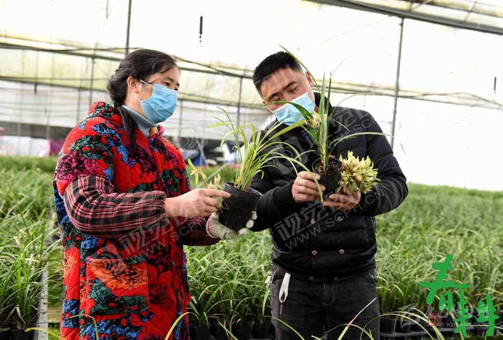 綿陽市安州區(qū)塔水鎮(zhèn)蘭草大棚內(nèi),工人們戴著口罩正在園內(nèi)下花、翻盆、除草,搶抓農(nóng)時(shí),做到防疫春管兩不誤。