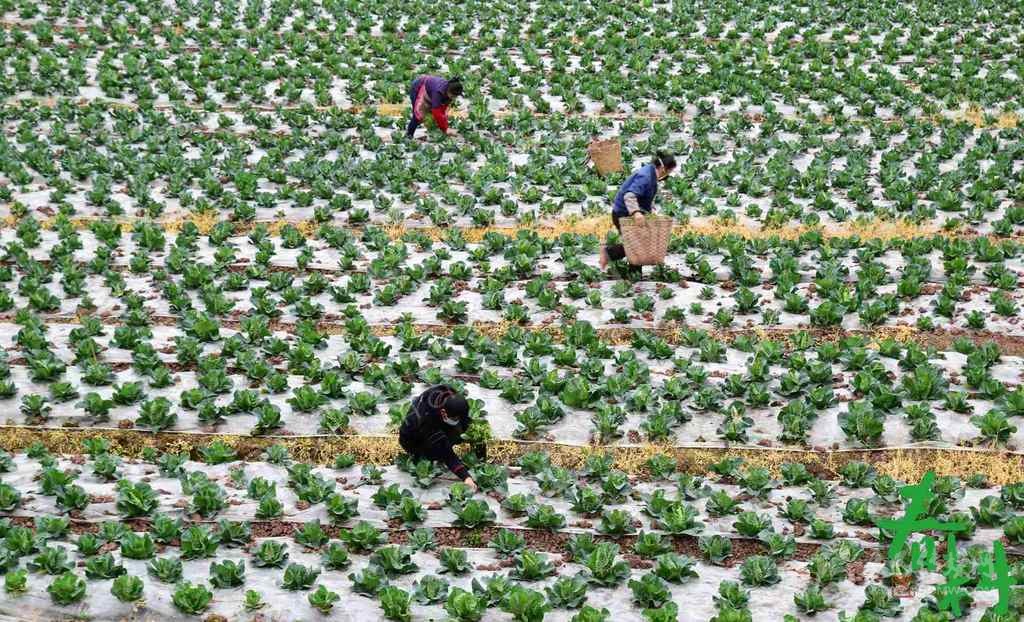 廣安市廣安區(qū)大龍鎮(zhèn)光明村村民在甘藍(lán)地里春管除草。