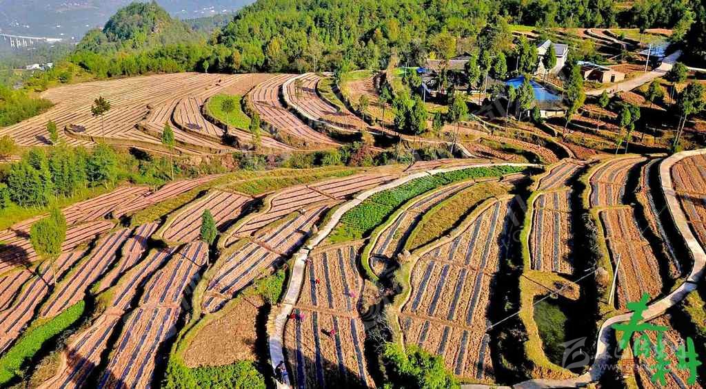 南江縣楊壩鎮(zhèn)組織的勞動(dòng)力在柏林村新開墾的茶梯地開溝理廂準(zhǔn)備栽植茶苗。