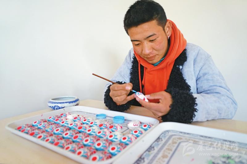 本著自主自愿的原則,教學(xué)班結(jié)束后,65名藏族青年主動(dòng)加入扶貧彩繪實(shí)訓(xùn)班,成為項(xiàng)目的第一批學(xué)員。“實(shí)訓(xùn)期間不需要交任何費(fèi)用,還包吃住。我對(duì)畫(huà)京劇臉譜很有興趣,我們第一個(gè)月學(xué)習(xí)繪畫(huà)基本功,第二個(gè)月開(kāi)始,根據(jù)成品質(zhì)量,就可以計(jì)件得酬勞,學(xué)習(xí)期間我每月能掙500多元?!壁雠f(shuō)。