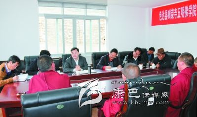 “我們這次來(lái)的目的就是想和大家交流,聽聽五明佛學(xué)院有什么困難,有什么需要黨委、政府支持的。”一走進(jìn)寺院,胡昌升便道出了此行目的。他說(shuō),僧尼是基本群眾、寺廟是基本社會(huì)單元。黨委、政府應(yīng)該關(guān)心所有的僧尼和寺廟,但寺廟也要履行好自己的責(zé)任和義務(wù),真正把五明佛學(xué)院管得有序,讓這里的僧眾在文明和諧的氛圍中提高自己的佛學(xué)水平。