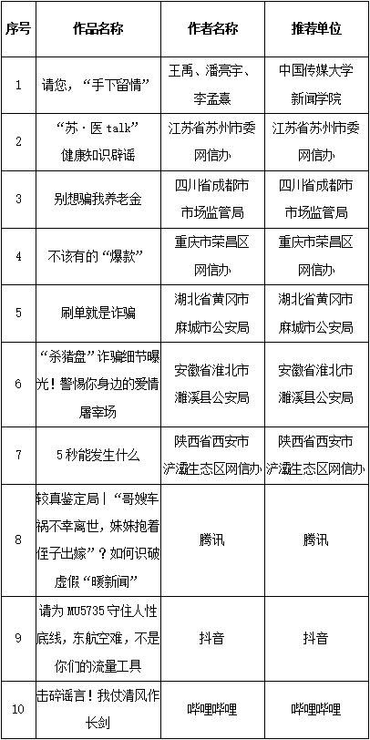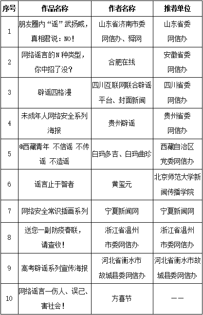 附:第五屆中國互聯(lián)網辟謠優(yōu)秀作品獲獎名單