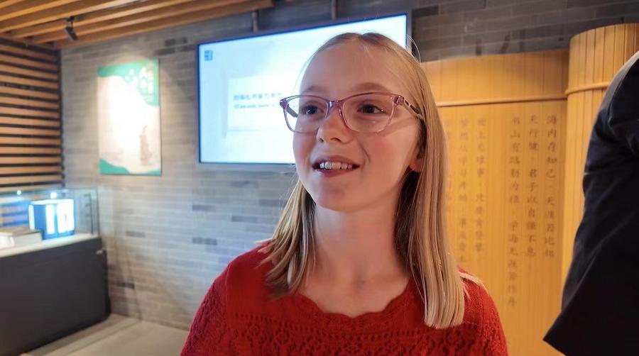 ??“我很喜歡中國,因?yàn)橹袊娴暮芸?!”美國猶他州卡斯卡德小學(xué)學(xué)生米麗婭姆·居布萊能講一口流利的中文。