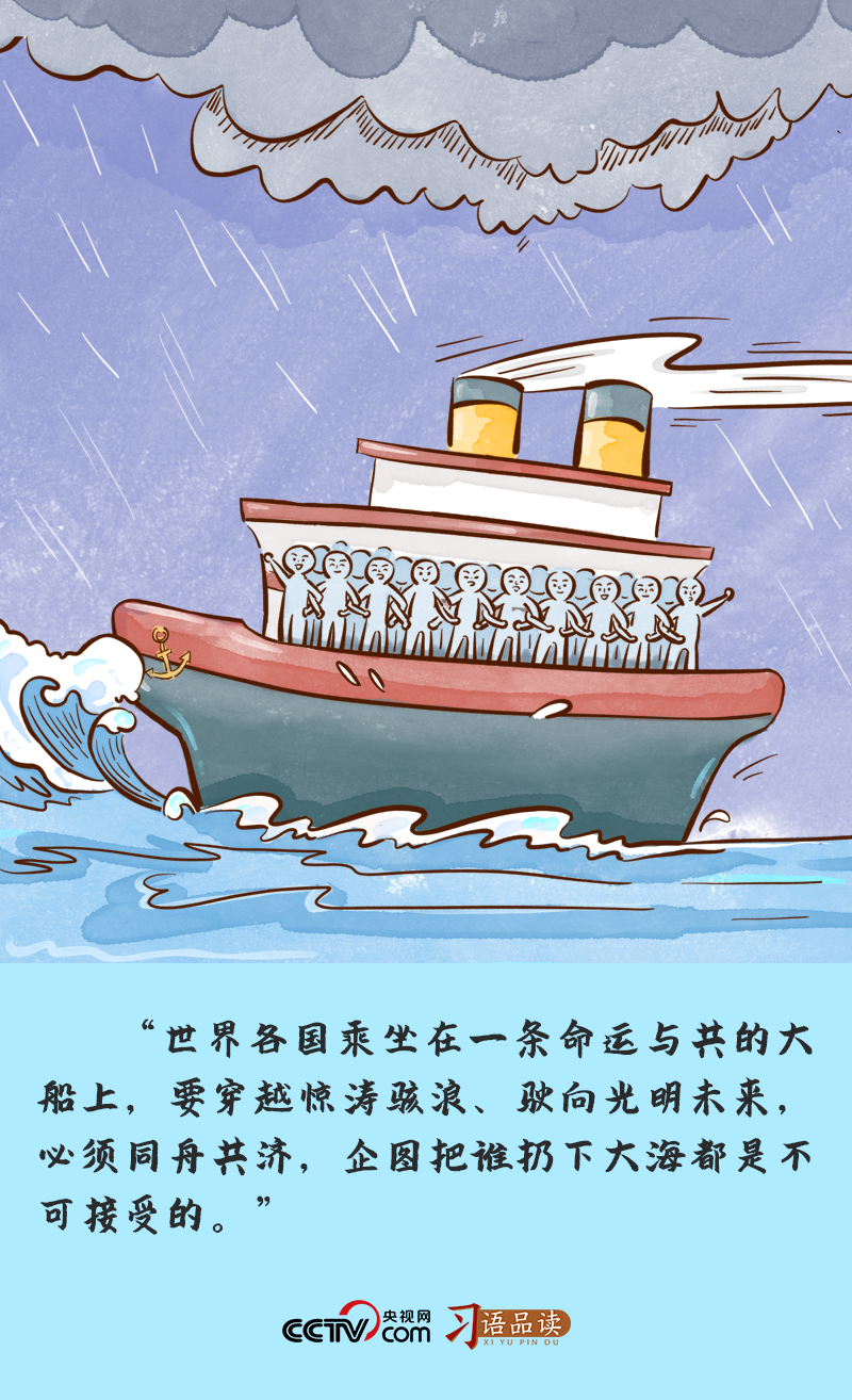 2022年1月17日,在2022年世界經(jīng)濟論壇視頻會議上,習主席深刻闡釋“小船”和“大船”的關系:“各國不是乘坐在190多條小船上,而是乘坐在一條命運與共的大船上。小船經(jīng)不起風浪,巨艦才能頂住驚濤駭浪。”