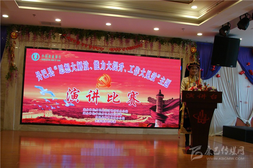 本網訊(楊全富)4月24日,由丹巴縣大討論活動辦公室主辦,縣委宣傳部、縣精神文明辦、共青團縣委承辦的 “思想大解放、能力大提升、工作大見效”主題演講比賽開賽。11名來自各條戰(zhàn)線的干部職工參加了本次比賽。圖為比賽現(xiàn)場。