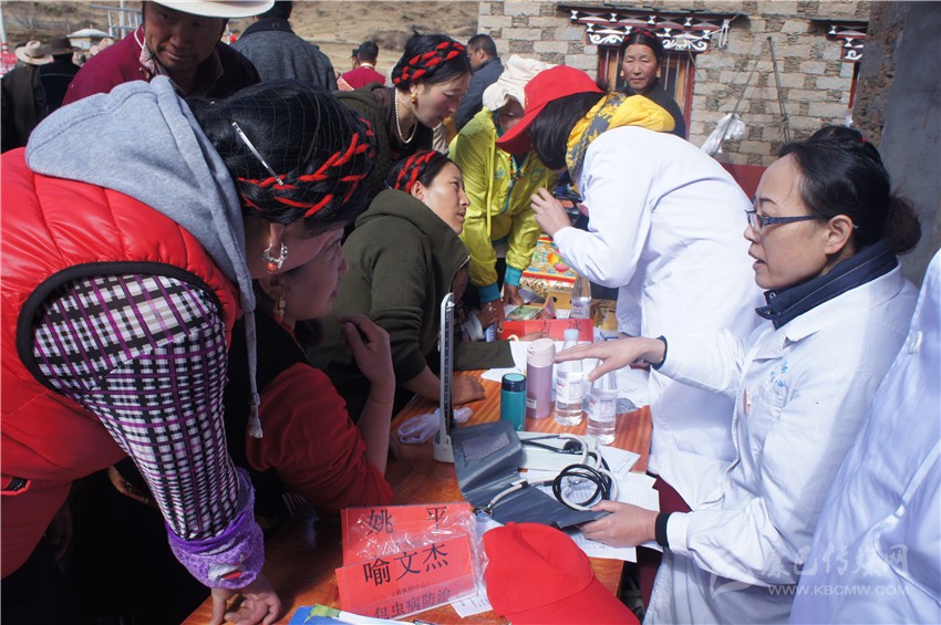 醫(yī)護(hù)人員仔細(xì)詢問病情,拿出聽診器聽心率,又用血壓計(jì)為他量血壓??粗t(yī)生一陣忙活,彭措老人感激地說:“謝謝你們!”經(jīng)過檢查,老人身體并無大礙,只是血壓稍高,醫(yī)生當(dāng)場開了處方。