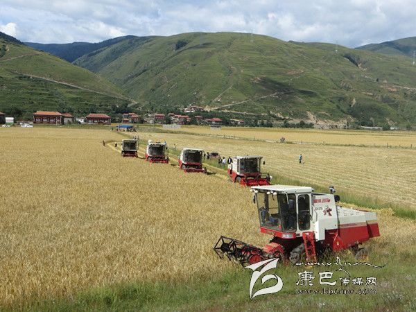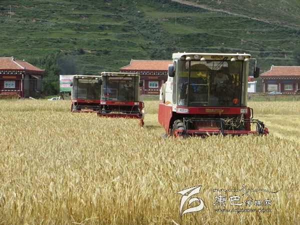 本網訊(胡筱紅 龍正芳 文/圖) 高原的八月是絢麗多彩的時節(jié),是糧食收獲的季節(jié)。爐霍縣300畝全程機械化青稞作業(yè)示范片項目機收工作于8月20日正式啟動,共出動大型聯合收割機5臺、拖拉機5臺同時作業(yè),正常情況下一臺收割機一天可以收割65至70畝,青稞示范片不出5天就能完成收割。對比以往的種植和收獲方式,全程機械化作業(yè)從播種到收獲帶來的社會效益及經濟效益都遠遠高于傳統(tǒng)種植方式。