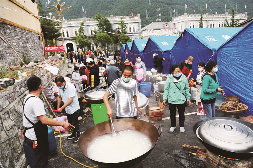 黨旗在地震災(zāi)區(qū)高高飄揚