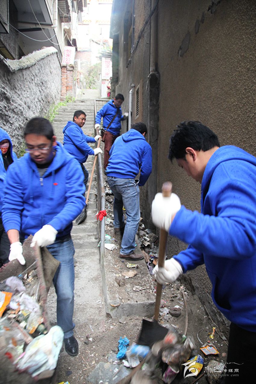 一群“藍精靈”在康定縣的3個社區(qū)里將公共衛(wèi)生打掃的干干凈凈,贏得了社區(qū)居民的一致好評,這群“藍精靈”就是甘孜州第二批優(yōu)秀年輕干部人才培訓(xùn)班的全體學(xué)員。10月24日,這批學(xué)員前往康定縣水井子、子耳坡等三個社區(qū)開展社會實踐活動,看望慰問社區(qū)貧困居民和特殊人群,并自帶工具開展義務(wù)打掃衛(wèi)生活動,為當(dāng)?shù)厝罕姞I造了一個干凈的環(huán)境。
