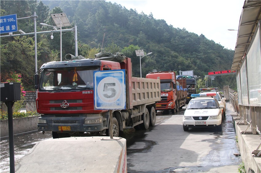 去年10月21日,全國(guó)將執(zhí)行新的貨運(yùn)車裝載標(biāo)準(zhǔn),將降低貨車運(yùn)載量。20日,瀘定檢測(cè)站迎來(lái)了大貨車運(yùn)輸高峰,當(dāng)天通過(guò)瀘定檢測(cè)站的進(jìn)州貨車就高達(dá)953輛,陡然增加的車流量,讓瀘定檢測(cè)站執(zhí)法人員忙得不可開交。凌晨1點(diǎn)左右,因距離檢測(cè)站數(shù)公里外道路正在施工,造成交通大面積擁堵。盡管不在工作職責(zé)范圍內(nèi),瀘定檢測(cè)站除值班人員留守外,交通路政、運(yùn)管、公安交警、特警全員上陣疏導(dǎo)交通。恢復(fù)通行時(shí),已經(jīng)是凌晨3點(diǎn)過(guò)。對(duì)于這樣的“家常便飯”,執(zhí)法人員已經(jīng)司空見(jiàn)慣?!安荒茉跈z測(cè)站周邊造成交通擁堵,這是我們的職責(zé)”。