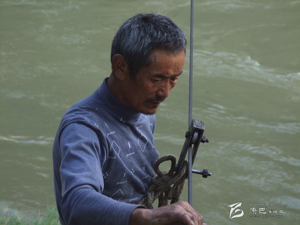 這個(gè)男人叫哈西布杰,58歲,小男孩是他的孫子。他到河邊來沒有別的目的,就是想看看記者是怎樣采訪的。于是,哈西布杰很快成為了采訪對象,他開始講述他的家族和這條溜索的故事。