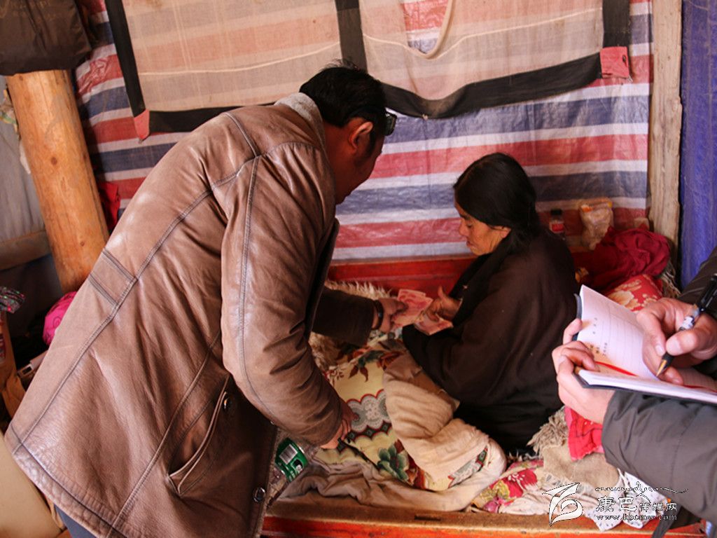 益西則瑪因患肺結(jié)核并伴有積水到成都治療,在花費(fèi)了近3萬(wàn)元的治療費(fèi)后,她中斷了治療。3萬(wàn)元,對(duì)于一個(gè)貧困家庭無(wú)疑是筆巨款,讓他們?cè)贌o(wú)能力繼續(xù)治療。鄉(xiāng)上得知情況后,立即對(duì)此進(jìn)行研究,決定賡即向有關(guān)部門反映相關(guān)情況盡量為益西則瑪爭(zhēng)取到救助資金,同時(shí),鄉(xiāng)上干部職工積極捐款捐物,下午孫曉牧帶著第一書記和包村干部來(lái)到益西則瑪家,把捐款和大米、清油送到了益西則瑪家,解決她家的燃眉之急。圖為孫曉牧將捐款送到益西則瑪手中。(唐書偉 陳雪峰 攝影報(bào)道)