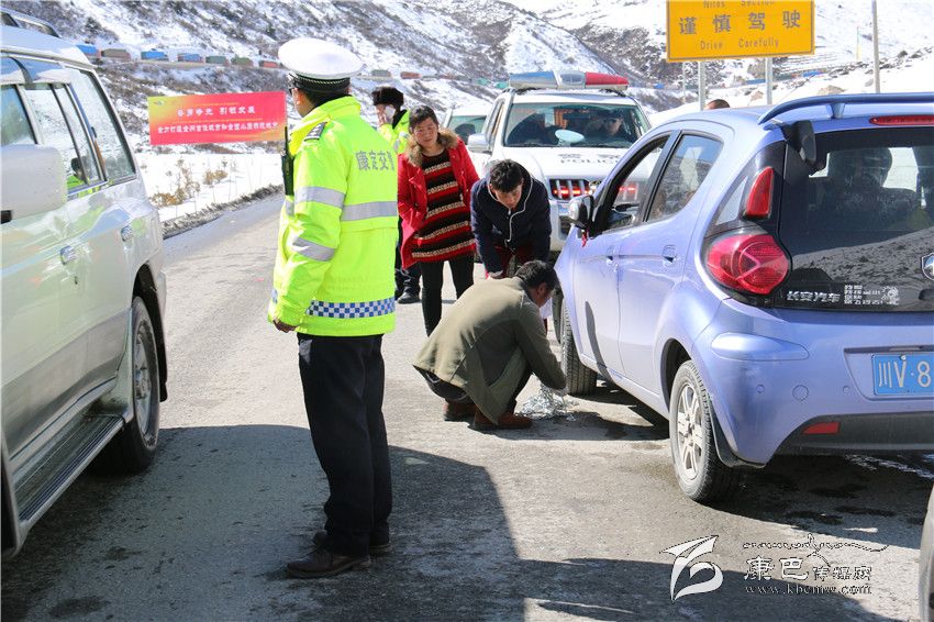 在現(xiàn)場,記者看到有很多車從折多山通過,結(jié)冰的路面使車輛打滑,不遵守交通規(guī)則的“魯莽司機”硬塞硬擠造成道路堵車,給道路疏通工作帶來了很大的不便。“26日以后,天氣逐漸好轉(zhuǎn),白天日照后冰雪開始融化,但是下午4點左右,溫度開始下降,道路上的雪水又結(jié)成冰,車輛根本沒法前行。”據(jù)現(xiàn)場交警介紹,從29日開始,折多山恢復(fù)了對大車的通行,造成車流量增大,車輛只能緩慢行駛,造成擁堵。加之大雪過后,路面結(jié)冰嚴(yán)重,上山的車輛大多沒有防滑鏈或者是到了結(jié)冰路段才停在路邊掛防滑鏈,造成車輛緩行擁堵。在行駛過程中,不少司機更是為能快速通行而違法超車,以至折多山路段一度交通中斷。